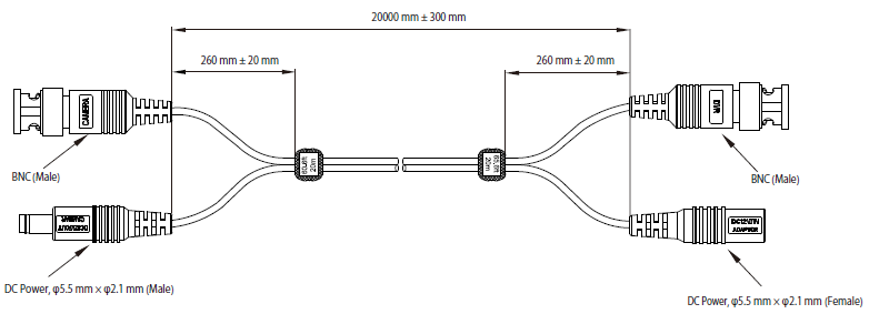 Câble vidéo combiné COAXIAL + DC 20m
