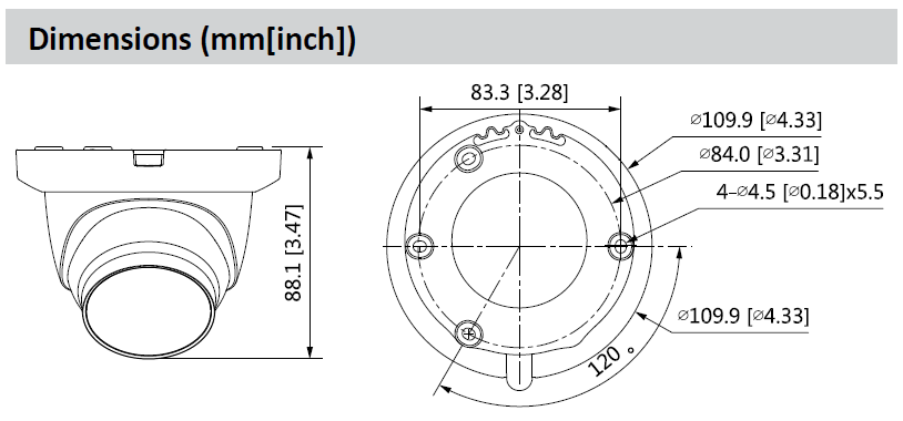 Caméra eyeball HDCVI 2MP