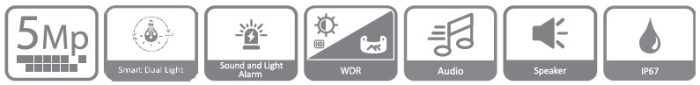 Caméra HDCVI Eyeball 5MP TIOC, Focale fixe 2.8mm, Dissuasion active 40m, Micro