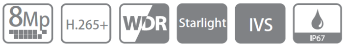 Caméra IP Bullet 8MP Starlight, Vari-focale motorisée 2.7~13.5mm, IR 60m