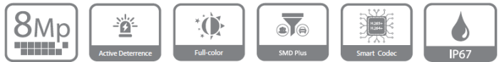 Caméra IP Bullet 8MP TIOC 2.0 WizSense, Focale fixe 3.6mm, Full Color, Dissuasion active 30m, Micro et HP