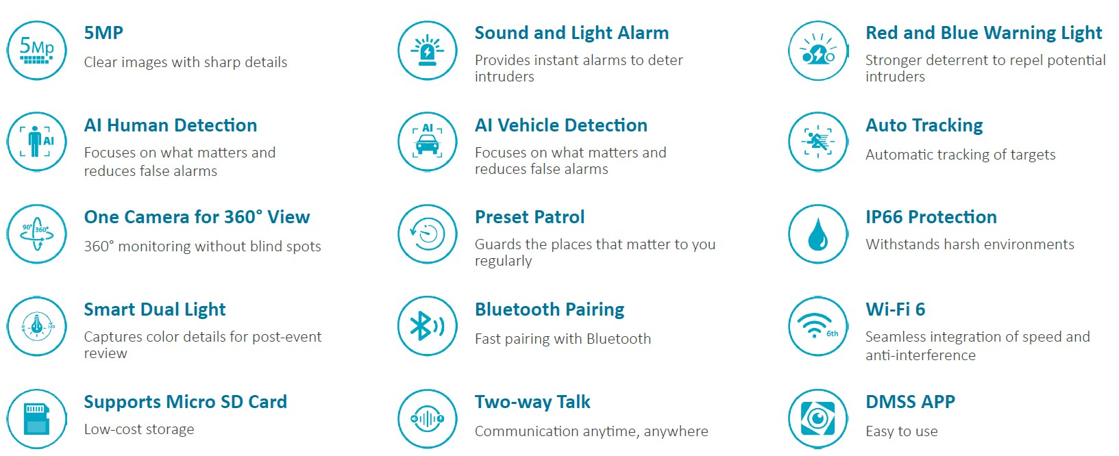 Caméra WIFI PT 5MP – Double éclairage 30m – Dissuasion active – Micro et HP