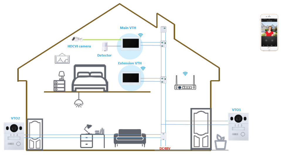 KTX01(S)KIT Visiophone – Station extérieure 2 fils IP et moniteur intérieur 7″ hybride