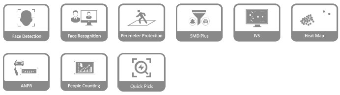 Quick Pick, ANPR, ligne virtuelle, carte thermique, intrusion, comptage de personne, reconnaissance faciale