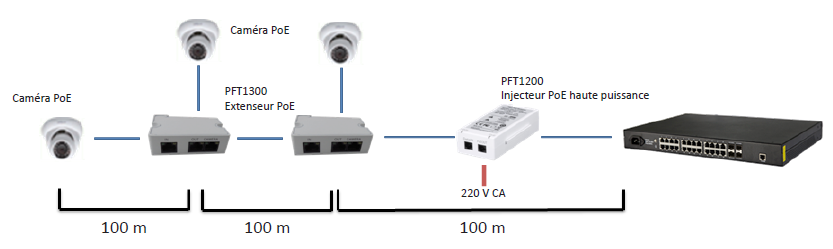 Utilisable avec l’extendeur PoE, possibilité de mettre en série 2 extendeurs PoE