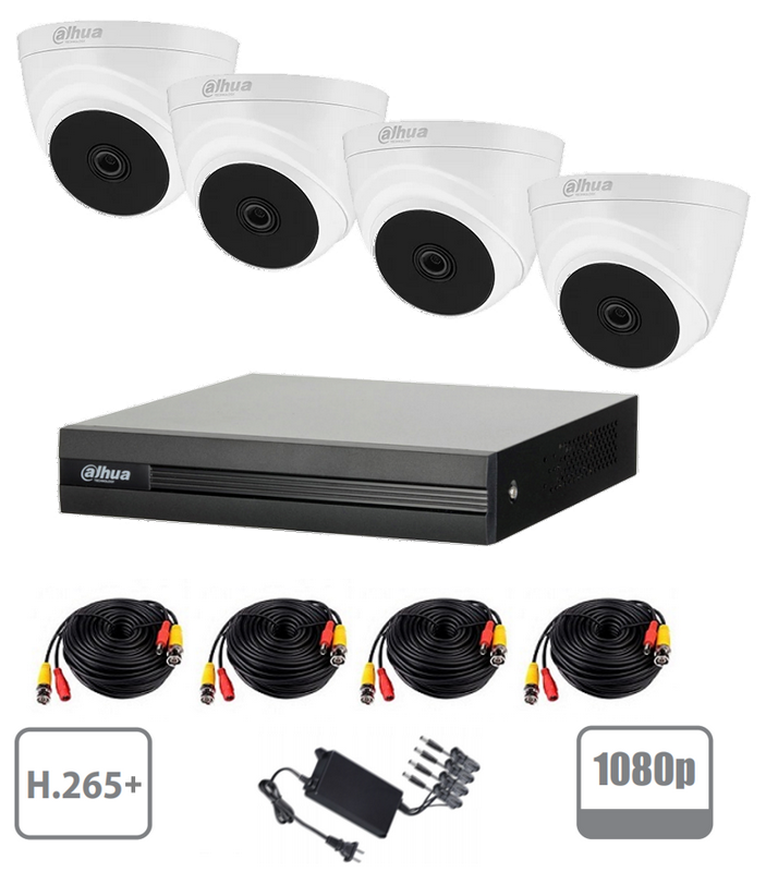 Kit 4 caméras HDCVI Eyeball 2MP + 4 câbles vidéo combiné COAXIAL + DC 18m + alim 4 sorties