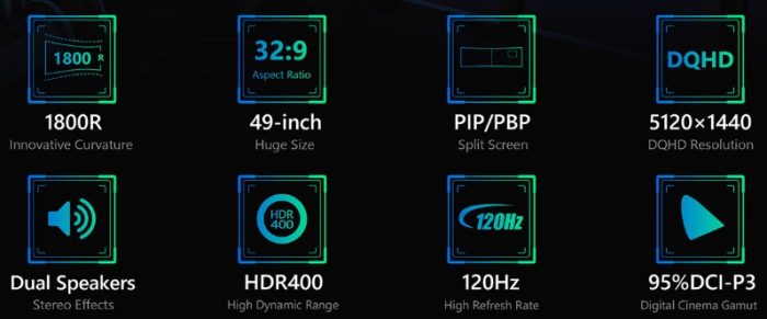 Moniteur Gaming ELED 49″ DQHD 120Hz – HP intégrés