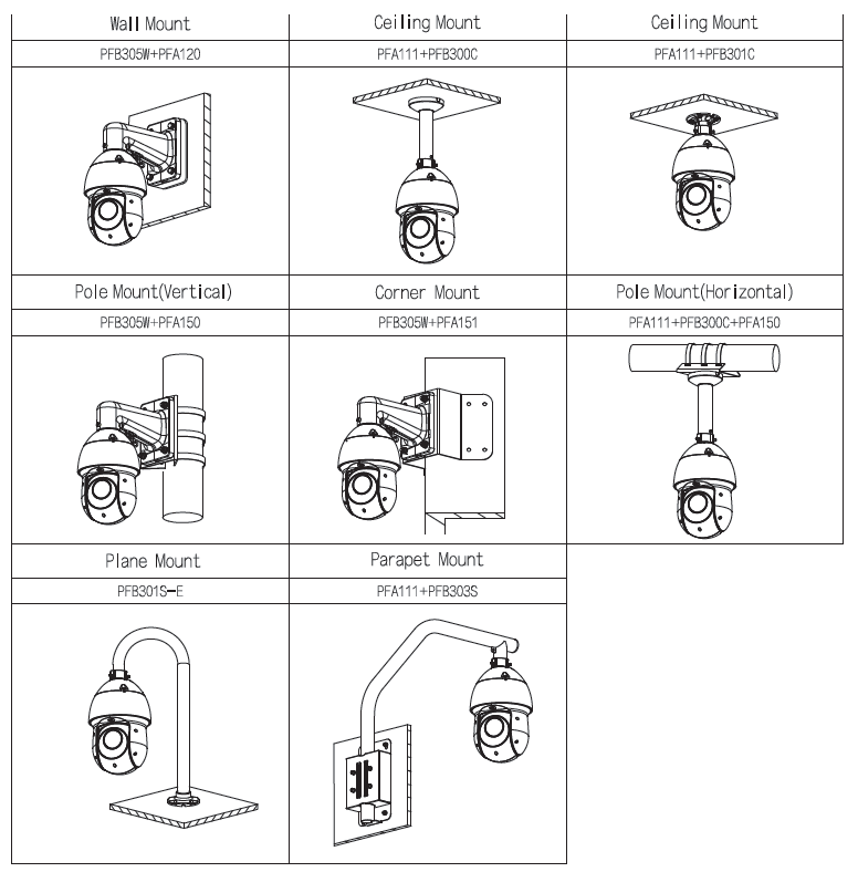 PFB300CSupport rallonge montage au plafond 235mm dôme