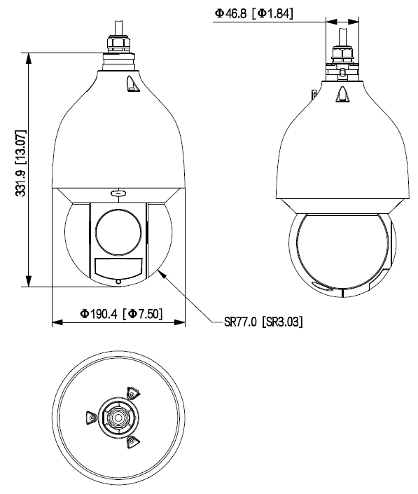 Portée LED IR max. : 150 m