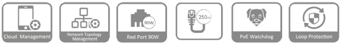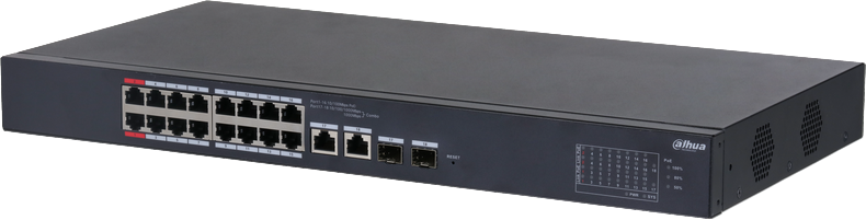 Switch 16 PoE 100Mbps + 2 ports Ethernet Gigabit + 2 ports optique – 240W – Cloud manageable – rackable